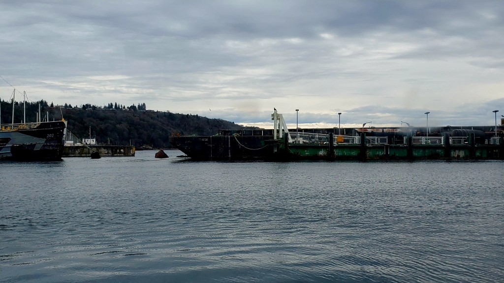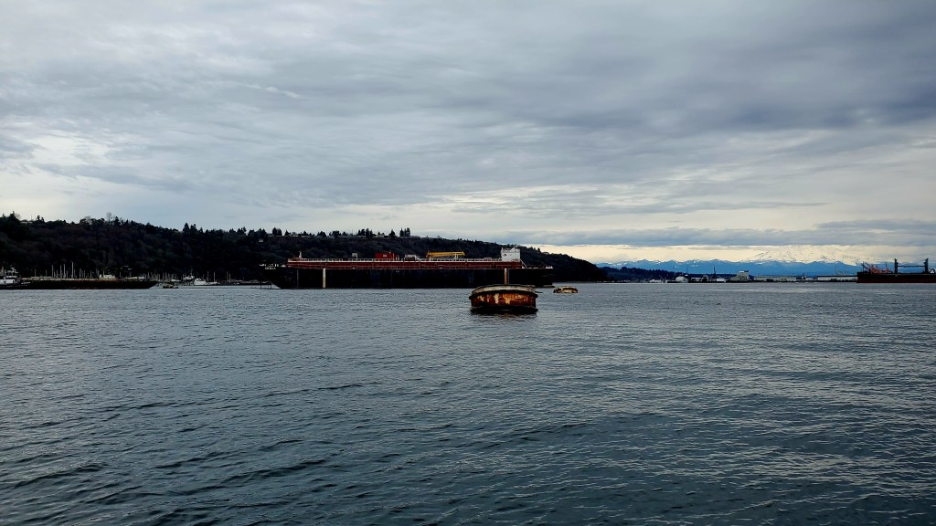 We left the Dock Street building and made our way over to the shoreline along Marine View Drive to take a look at Commencement Bay’s barge anchorage area.