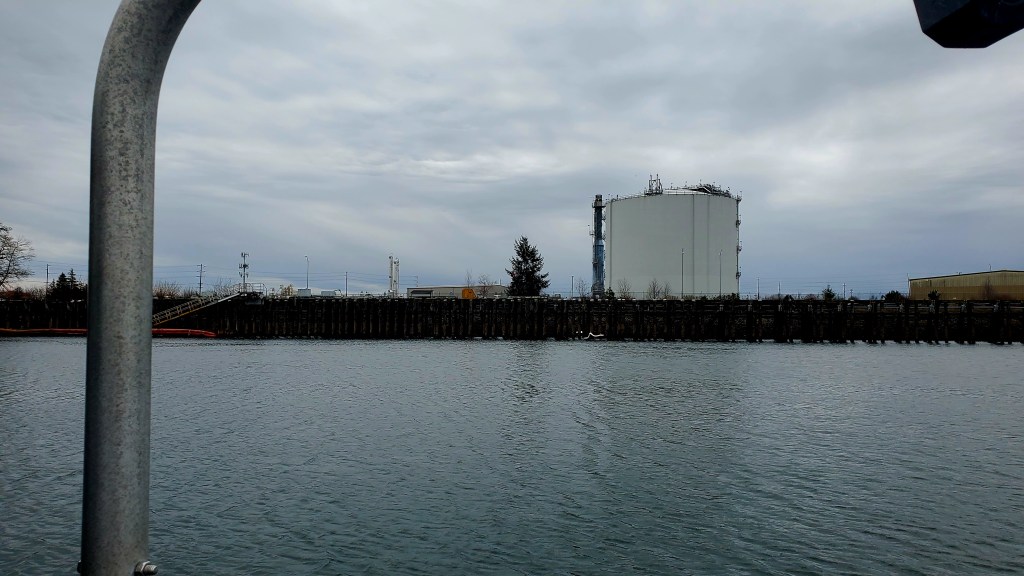 We continued south into the Hylebos waterway. Lindsay had a lot to tell us about ongoing water contamination issues, permit noncompliance, and all sorts of other things that CHB is monitoring.