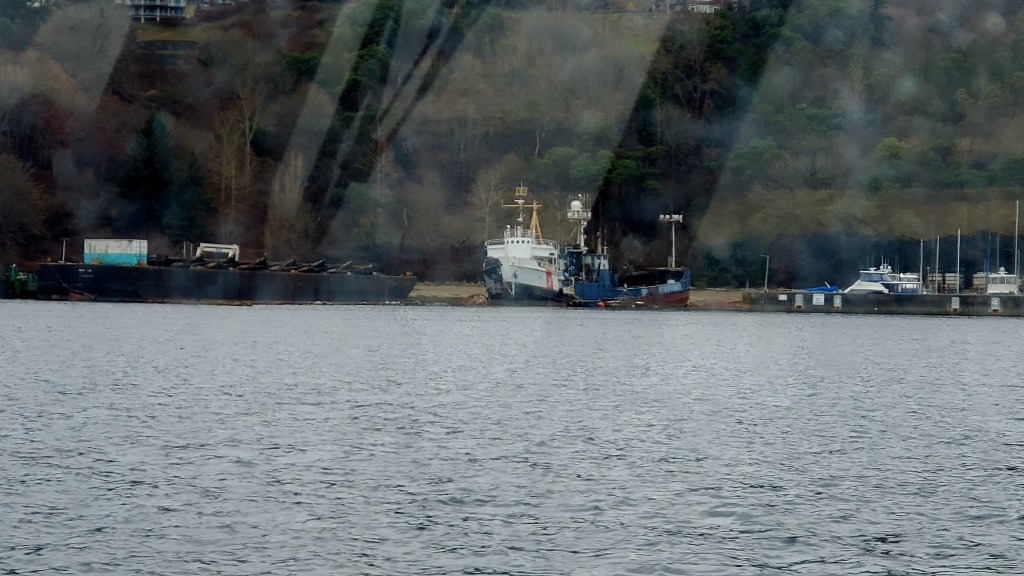 I’ve been very curious about this area for awhile, reading about the mess that’s been made near the Brown’s Point and Tyee Marinas – basically a breakwater made from derelict and sinking vessels.