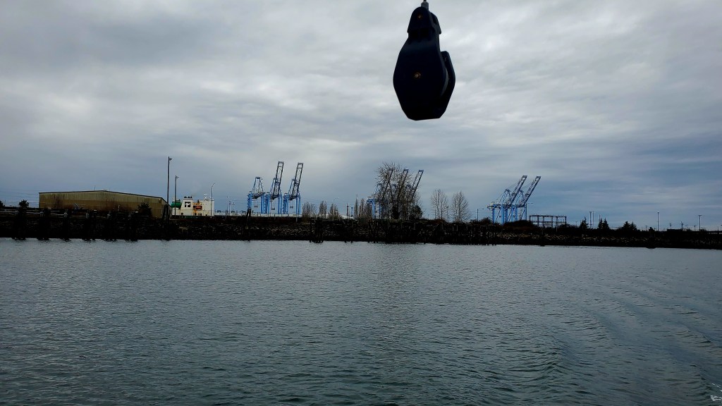 On Valentine’s Day I participated in a ride-along with Communities for a Healthy Bay’s (CHB) Bay Patrol! Yep, an excellent day on the water. Other than Captain Lindsay, there was just one other person aboard that day. Lindsay captain’s a 24-foot aluminum boat around Commencement Bay 2 to 3 times per week, monitoring pollution, trash, derelict boats, and whatever else might be interesting and in need of reporting.