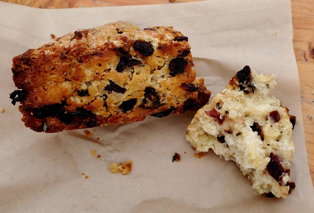 Must remember the Little Red Hen Bakery for next time. Delicious scones with a unique texture….rustic comes to mind. This one is my cranberry and rosemary, very delicious, and Nick had a ham, cheese, and scallion. Also picked up a sourdough loaf. Nice spot.