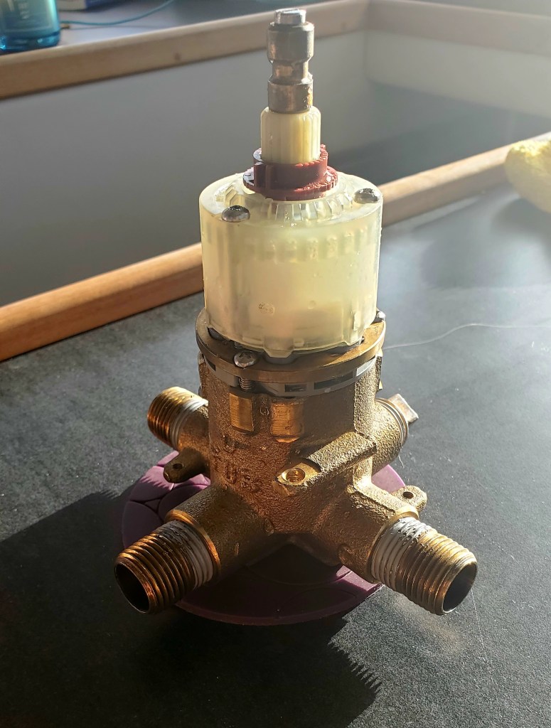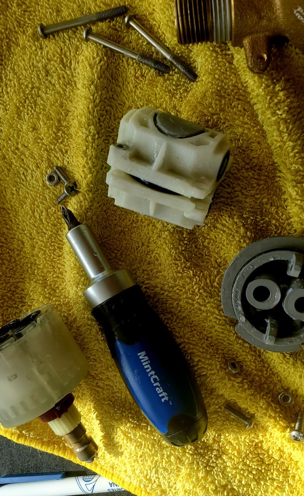 After taking it all apart several times and a few phone calls to our ever-helpful boat guru Kurt, we found further damage to the inside of the valve.