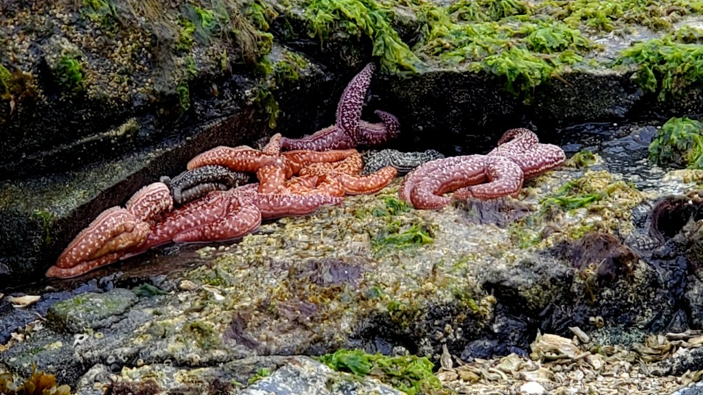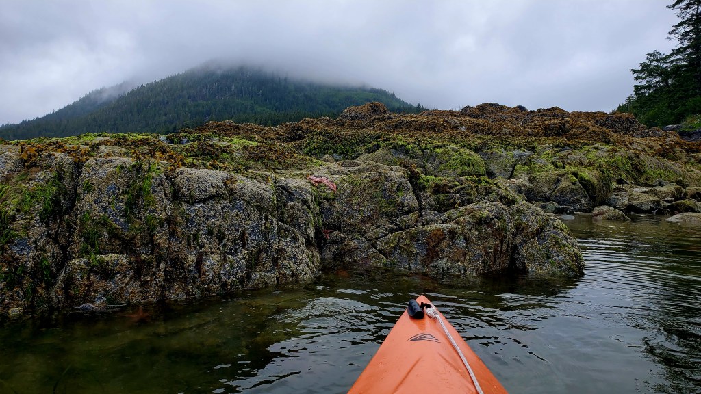 Nick and I took a quick paddle yesterday, and then I ventured out on my own this morning. Very good kayaking area. And a very healthy sea star population. Weather a bit different today, overcast and drizzly at times.