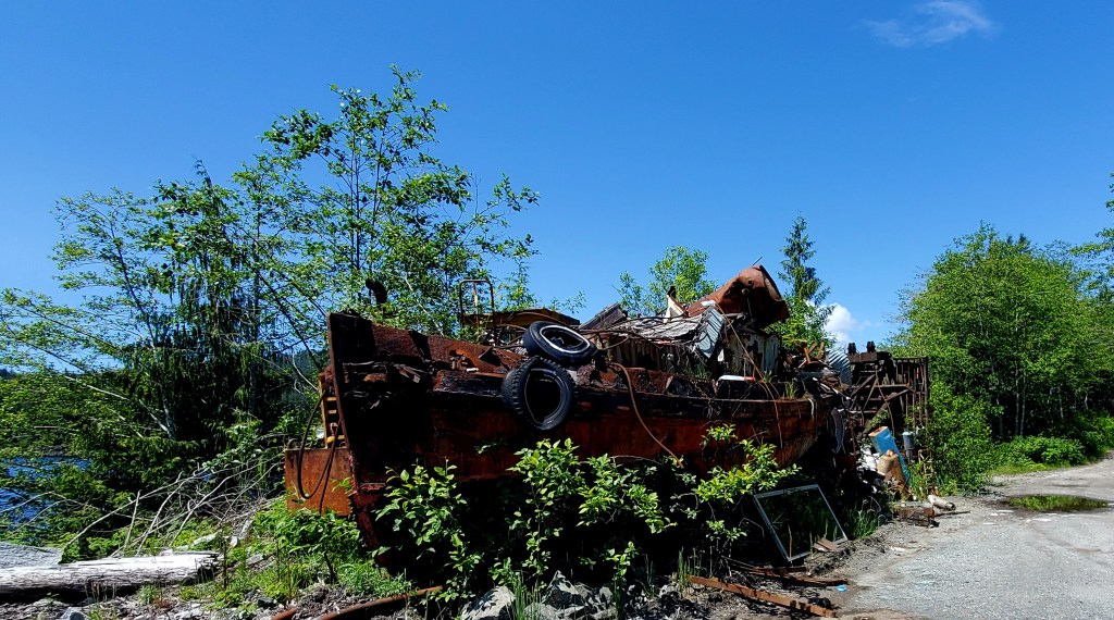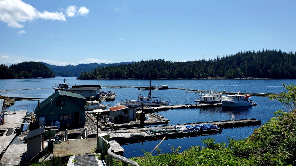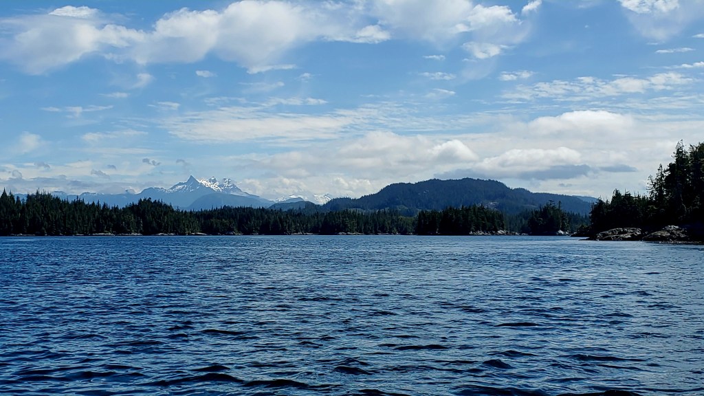 Back to the land of remote logging operations, prawn fisheries, and clear cuts. Also strings of gorgeous islets, eagles, blue water, high snow-covered peaks, and stunning views.