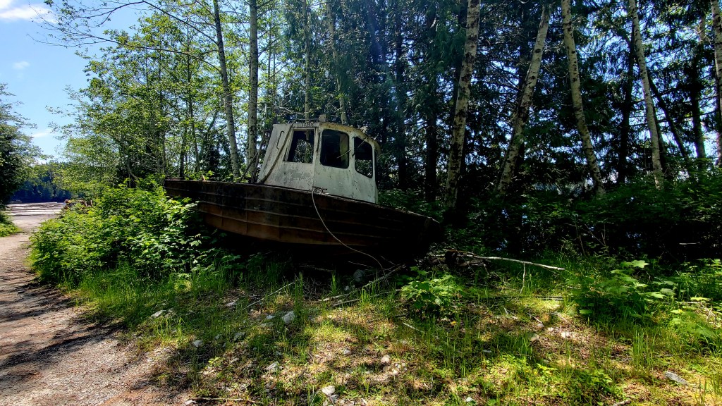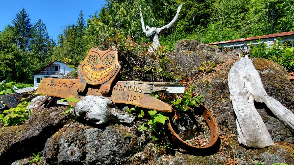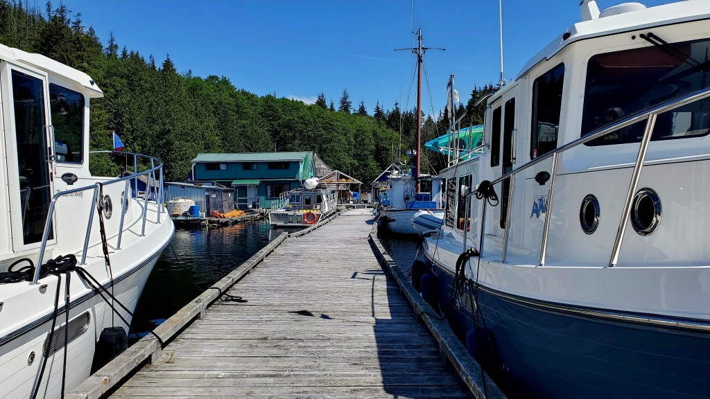 Jennis Bay is an interesting place, and likely the most north western location we’ll get to. It’s described as “a historic logging camp with a quaint, rustic feel.” I get the “rustic” part. It is definately a place to tie up, or somewhere to anchor in calm weather. It’s also a working marina for local fisheries, with junk everywhere, and live wells and generators running. If we were staying a second night, I would put my kayak in the water because it is very beautiful and looks like good paddling. We didn’t kayak yesterday because the breeze kicked up.