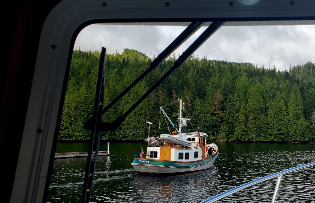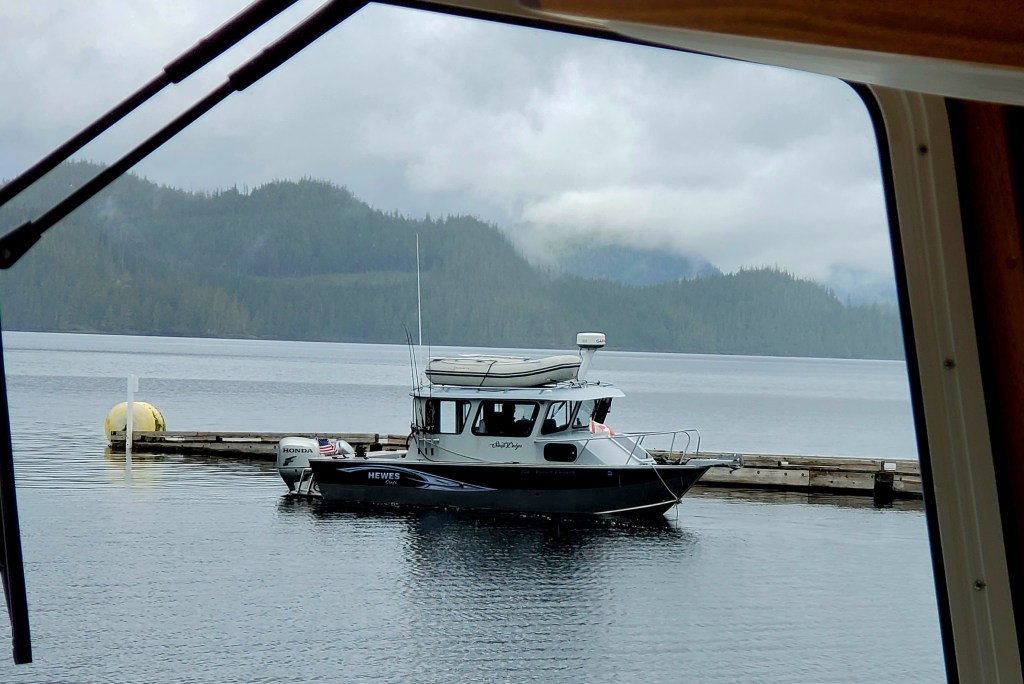Note to selves to remember Mark and Suzie aboard this HewesCraft. All the way from Anacortes in an awesome fishing boat!