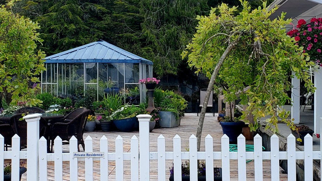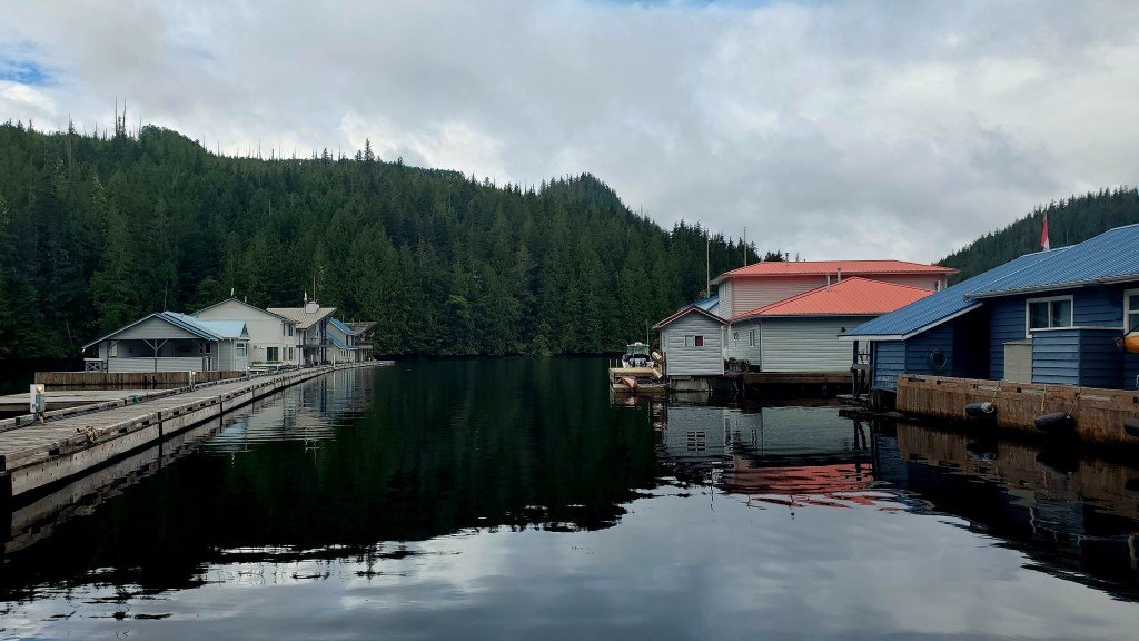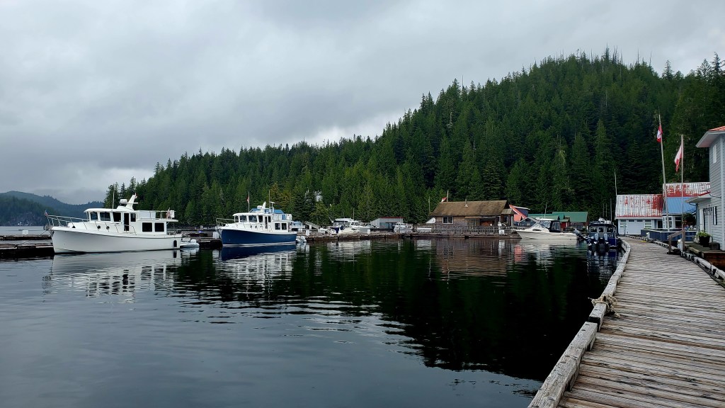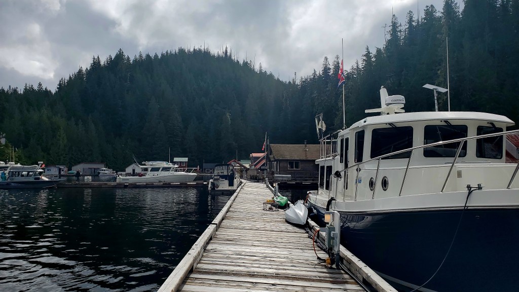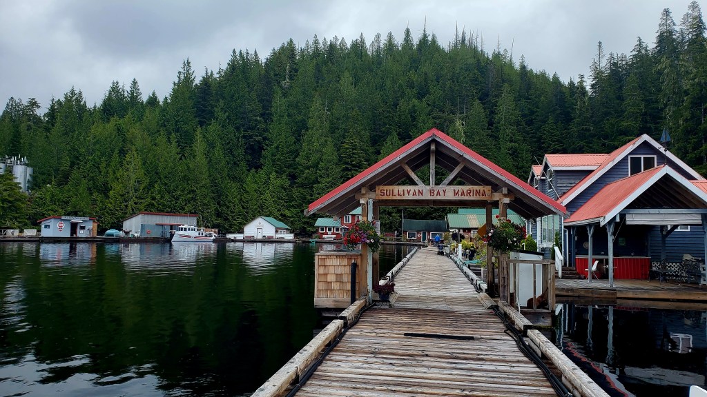 Now this is what I call charming! Sullivan Bay Marina is part of a dock system with about a dozen floating homes. There’s a fuel dock, general store, and restaurant (not yet open for the season). You can’t really get onto land here, except for one ramp leading to some kind of power/water plant on the rocky hillside. If you walk all the docks, though, you can get in about two miles.