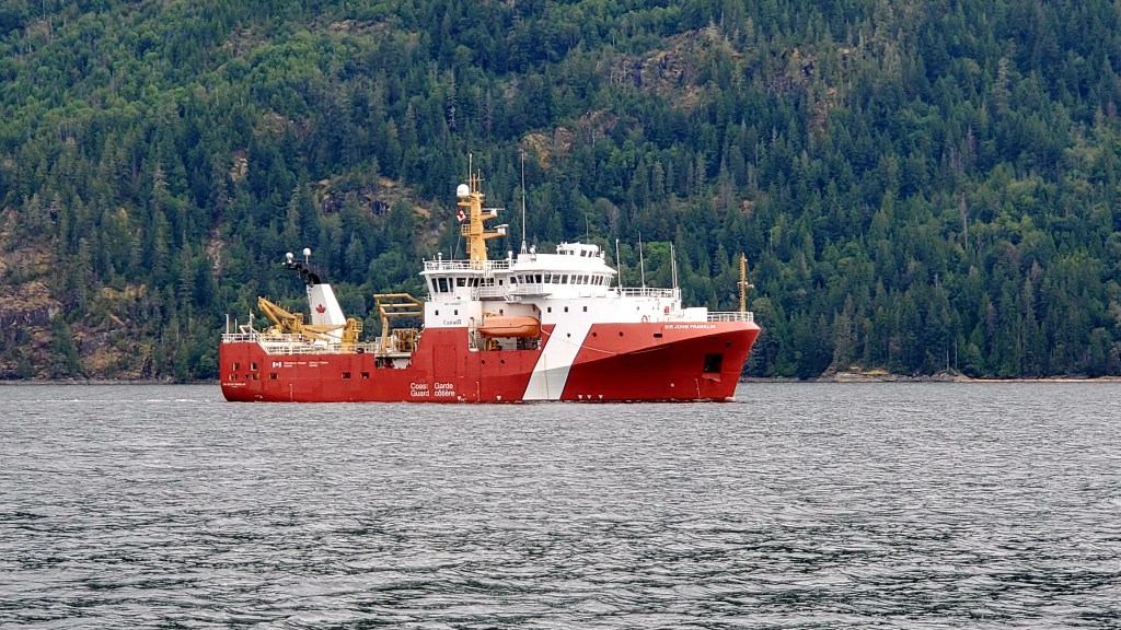 On the way from Toba Wilderness to Refuge Cove we passed this Coast Guard Cutter. It was towing buoys and I read later that it is a fisheries research ship.