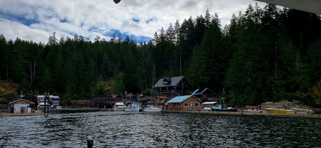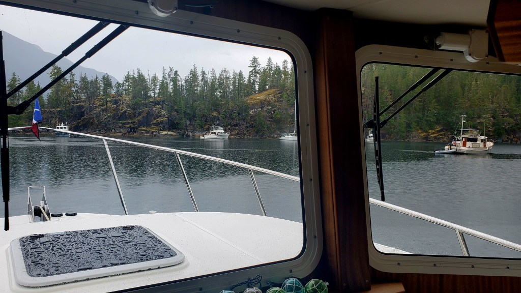 We are now at Gorge Harbour Marina Resort. We were here in July of 2018 in our Ranger Tug for a factory Desolation Sound trip. I didn’t remember much about it until I started walking around. Nice place. If it stops pouring, we might go for a walk and Nick might use the hot tub.