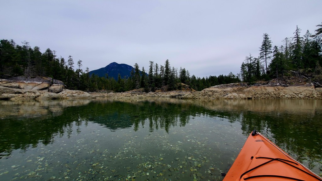 Entering the park, a narrow channel with lots of ins and outs. Aris making her way into Melanie Cove: