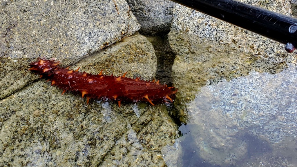 On Tuesday we kayaked again in the morning and hiked the trail to Laura Cove. After lunch we kayaked again into Laura Cove. Nick and I agree this may be the most spectacular kayaking experience yet. Lots of small coves to explore, in extremely clear water. The sea floor in the shallow areas was strewn with snails, clam shells, sand dollars, and oysters. Weather was perfect.