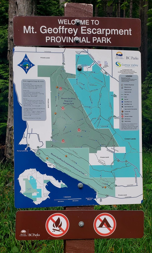 We enjoyed Fords Cove! Nice little store at the restaurant, decent docks with power. The trail to Shingle Spit, where the ferry terminal is, is really good. I didn’t do the entire thing, and Nick said there was some road walking at the end. All-in-all though, a nicely maintained and beautiful trail. It’s part of a much bigger system in Mt. Geoffrey Escarpment Provincial Park.