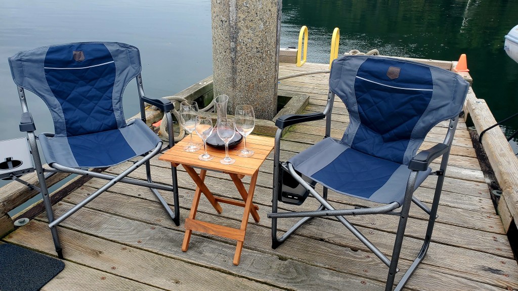 It spritzed a little but we were able to set up our chairs and table and share a nice bottle of Tranche Pape with our boat buddies.