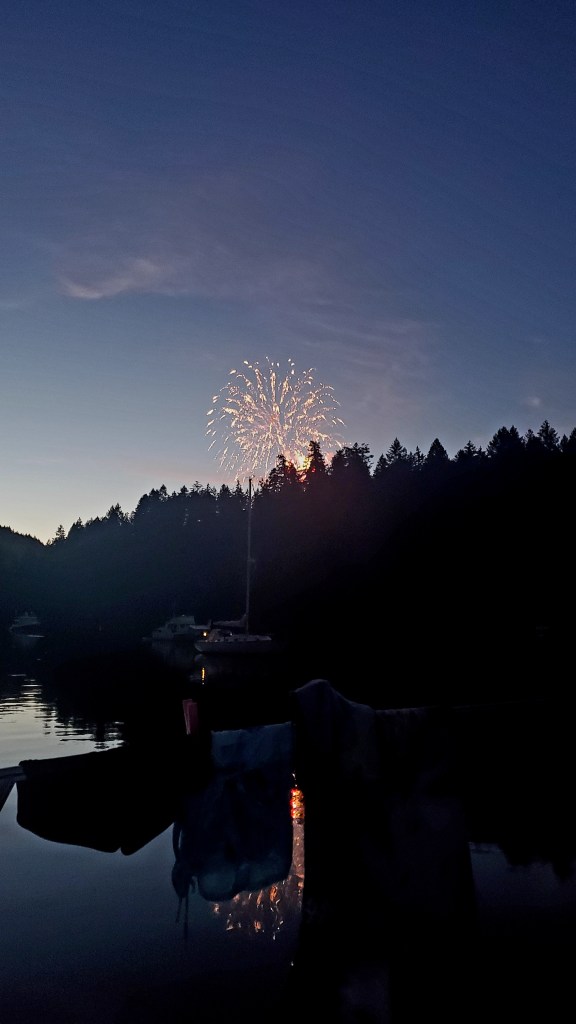 The fireworks were okay but we think maybe it will be best to avoid Tod Inlet on weekends in the future. It gets very busy with day trippers on the beach and boats there for the show.