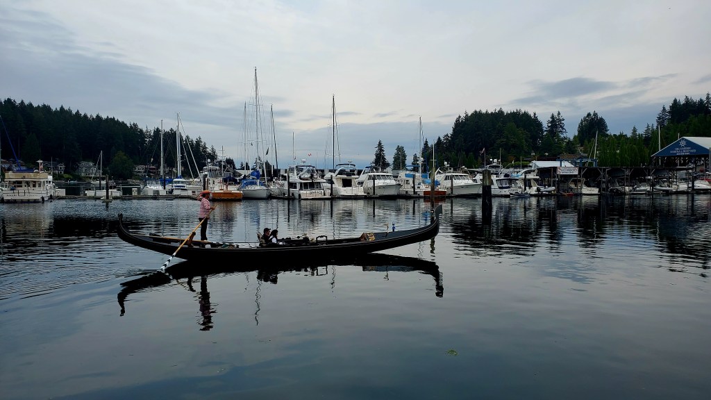 Other than that we hung out – cooking good food, drinking good (and not-so-good) wine, watching the usual Gig Harbor sights: canoe and kayak clubbers, dragon boat paddlers, little sailing club boats, and one of the gondolas:
