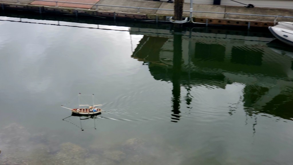 A guy (not a pirate) had this fun remotely operated vessel gliding around the marina. It played music!