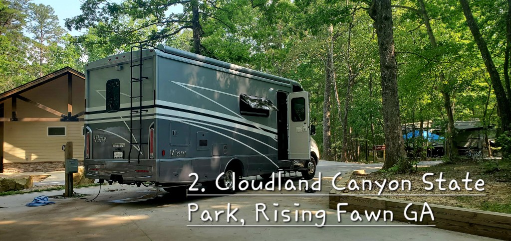 A quick summary: Our red-eye flight last Friday night was diverted from Orlando to Atlanta due to weather, so we rented a car and drove (6+ hours!) to cousins Beth & Drake Smith in New Smyrna Beach. Early Sunday morning we drove south for two hours to Port St. Lucie to LaMesa RecVan to pick up our RV. This was all supposed to happen on Saturday, so just one day off schedule. We did a 2-hour orientation, returned the rental car, then drove the RV back up to New Smyrna Beach, parked it in the Smith’s driveway and spent a second night. (In the camper. Had to test some things out.)