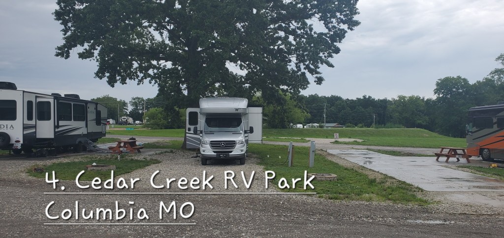 It’s been a lot of driving each day…too much, really. Even though we switch off regularly, it’s tiring. Driving a new, large vehicle is sometimes stressful. (And truckers! Don’t get me started.) We originally plotted a route (thanks AdventureGenie!) to do about 300 miles per day, getting us home in eleven days. We just changed that to 225 miles and 13 days, so we’ll see how that goes. Scenery in Florida, Georgia, and Kentucky was nice; Illinois, Missouri, Iowa – not so much. Terrific 2 to 6am thunderstorm in Kentucky – no leaks! Some rain on the road yesterday, but mostly good weather, if a bit hot and humid. So much roadkill! Good lord, I didn’t know there were so many armadillos in the south. (All dead.)