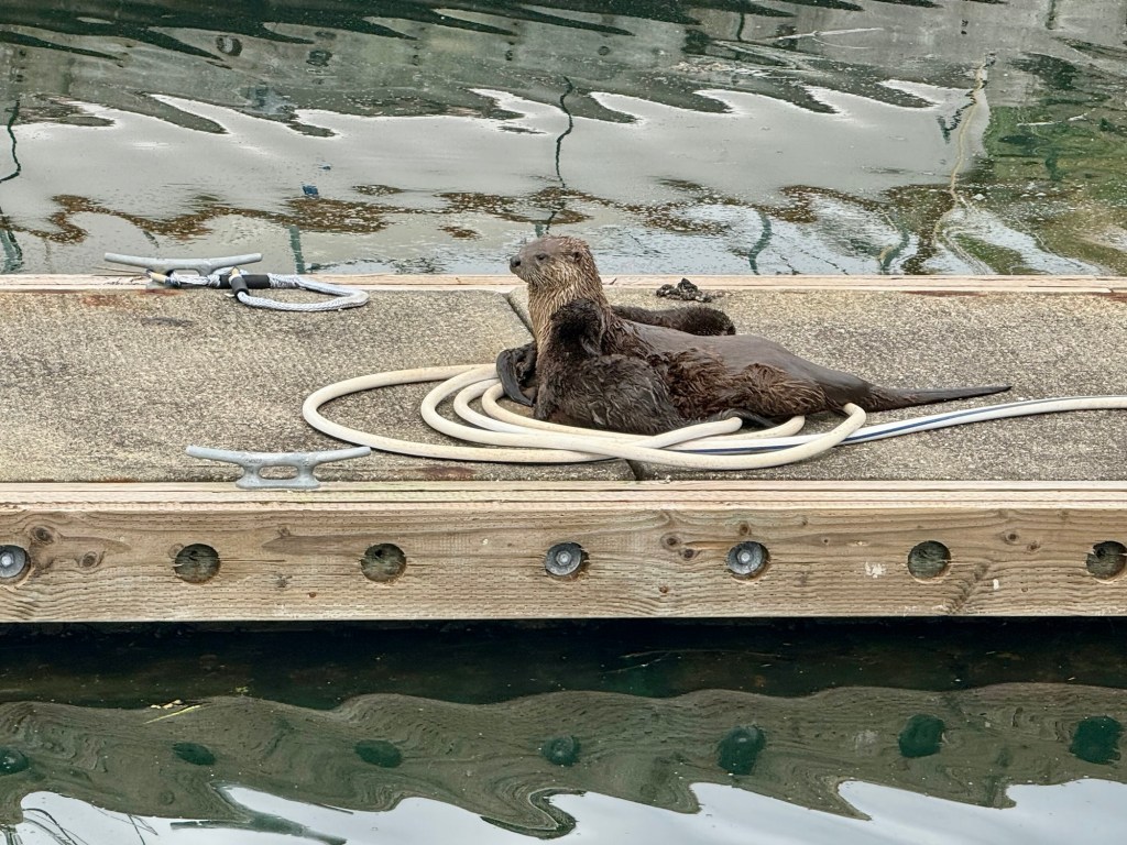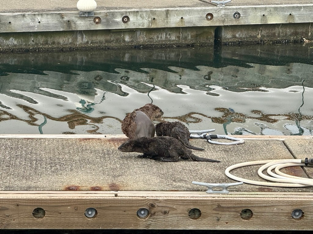 I neglected to include photos the other day of an otter family playing and feeding on the dock next to ours at Skyline.