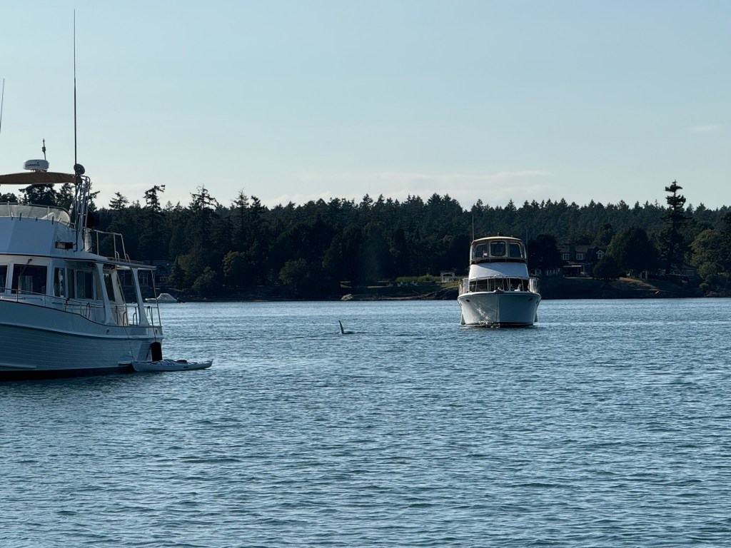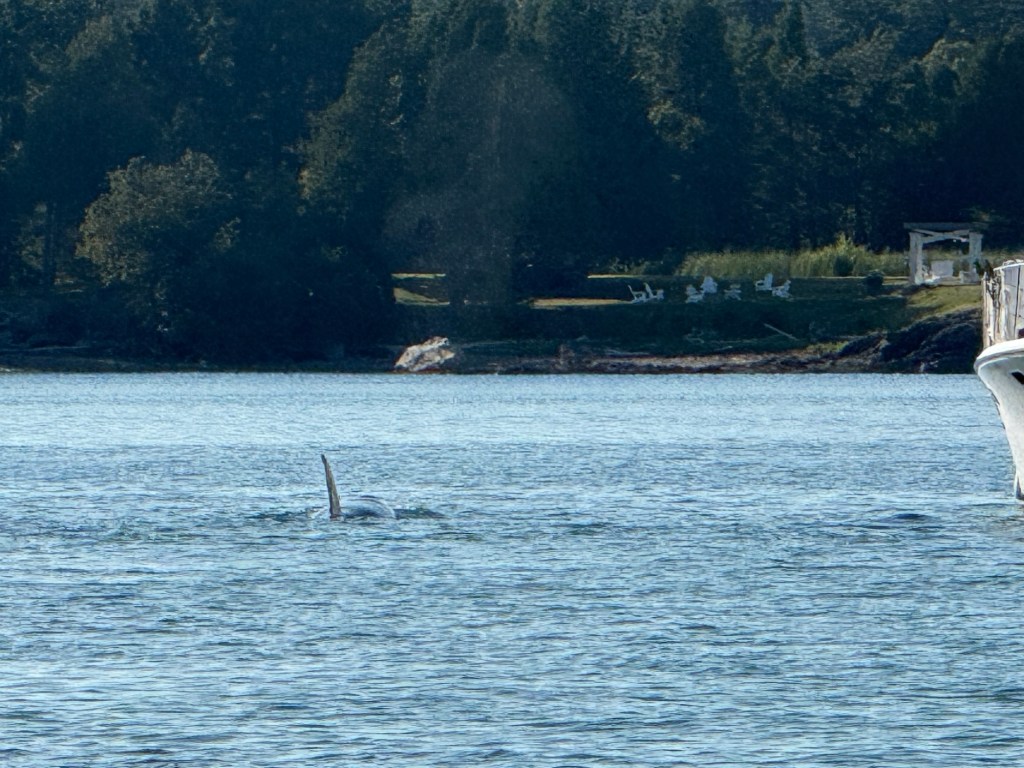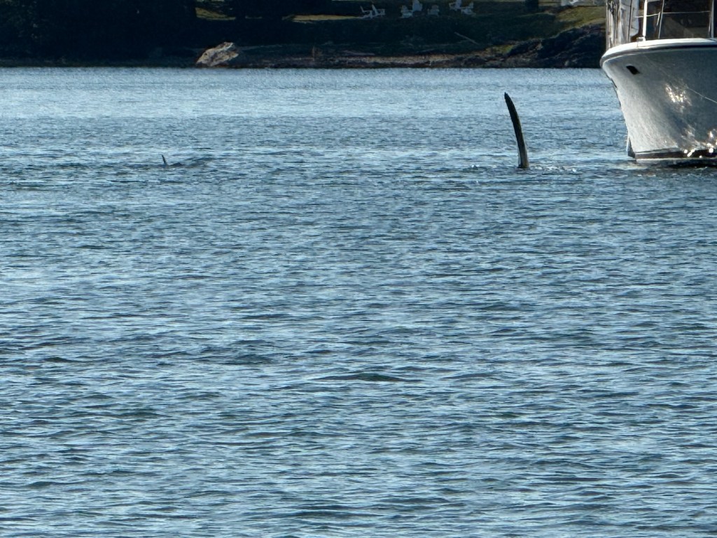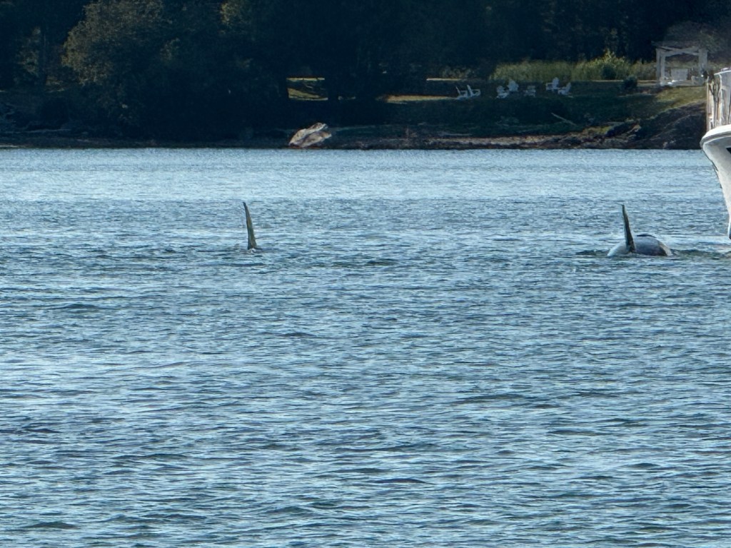 I’m not sure I’d have believed it if I didn’t see it with my own eyes! We had just pulled our pizzas off the grill when I looked up and saw two big black fins go by. I grabbed my phone and snapped a few pics as two orcas headed back to the mouth of the bay. Really, I had no idea whales would come all the way in here! Spectacular!