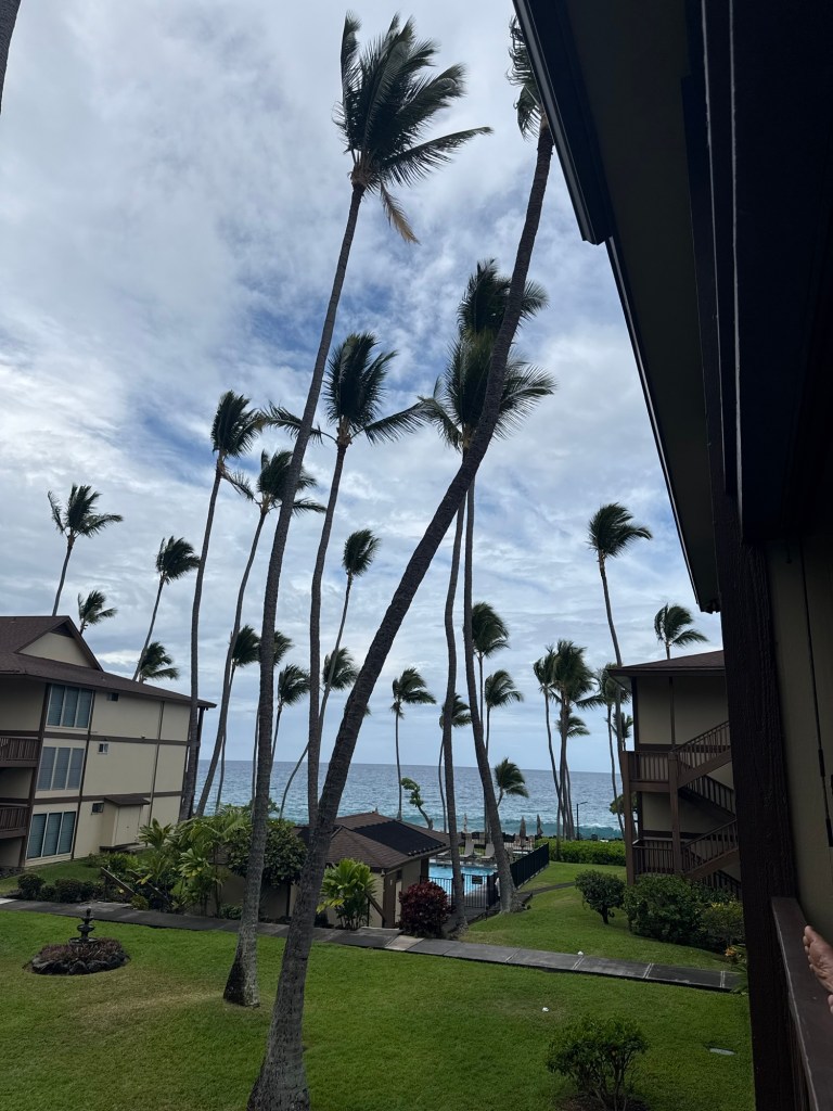 Nick and I arrived home from Kailua-Kona on April 5th. Despite the biggest storm to hit the area in fifty years, it was a wonderful trip. We were fortunate to have the Ramble On crew (Shannon & Steve) with us for part of the time. Lots of fun although our activities were hampered by more-rain-than-I’ve-ever-experienced and subsequent storm damage.