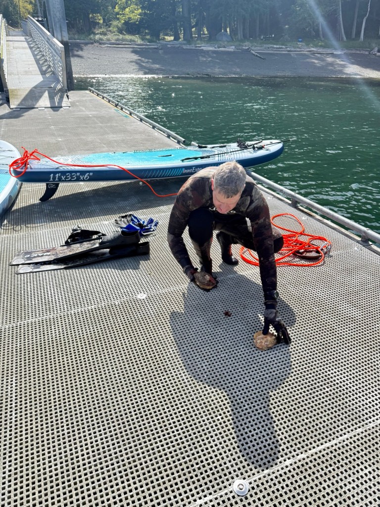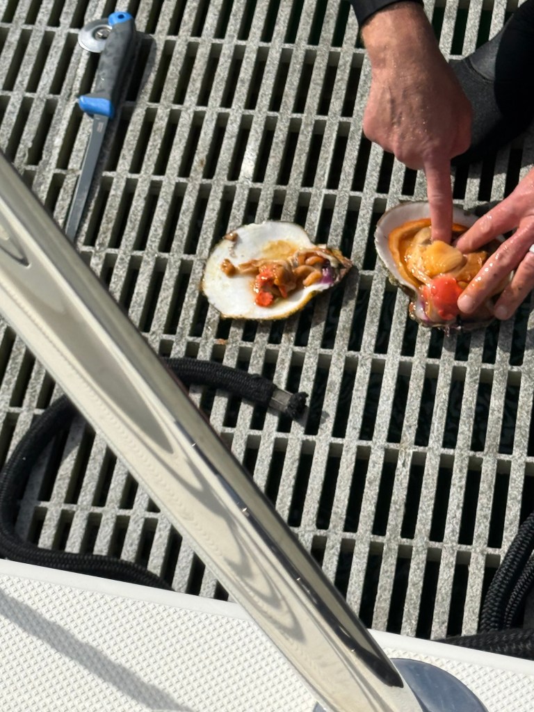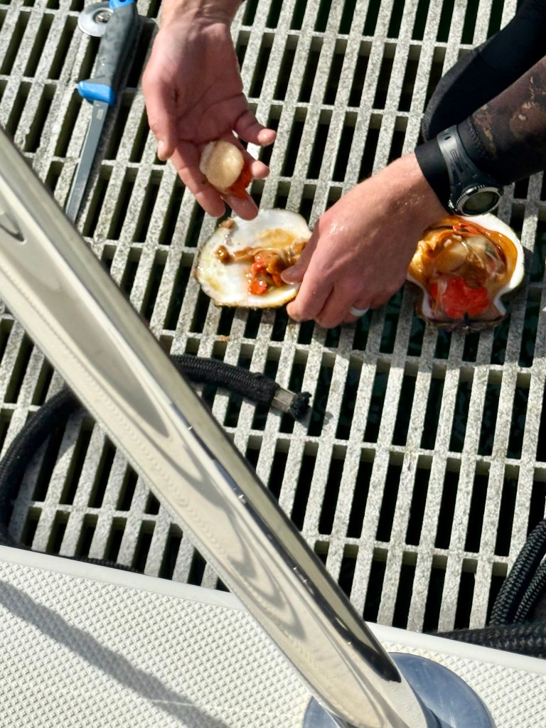 We got a bit of a treat Sunday in the form of some freshly plucked scallop from the seabed in North Cove (Jones Island).